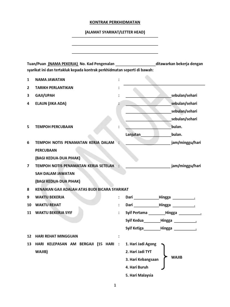 Contoh Surat Perjanjian Kerja Antara Majikan Dan Pekerja